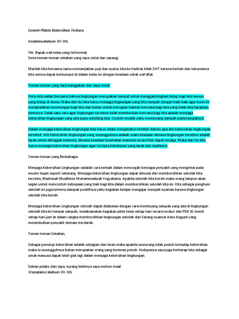 Pidato Tentang Kebersihan Lingkungan Sekolah Pdf Document
