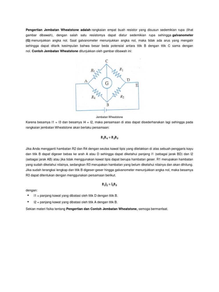 Doc Teori Jembatan Wheatstone Indrinur At Academia Edu