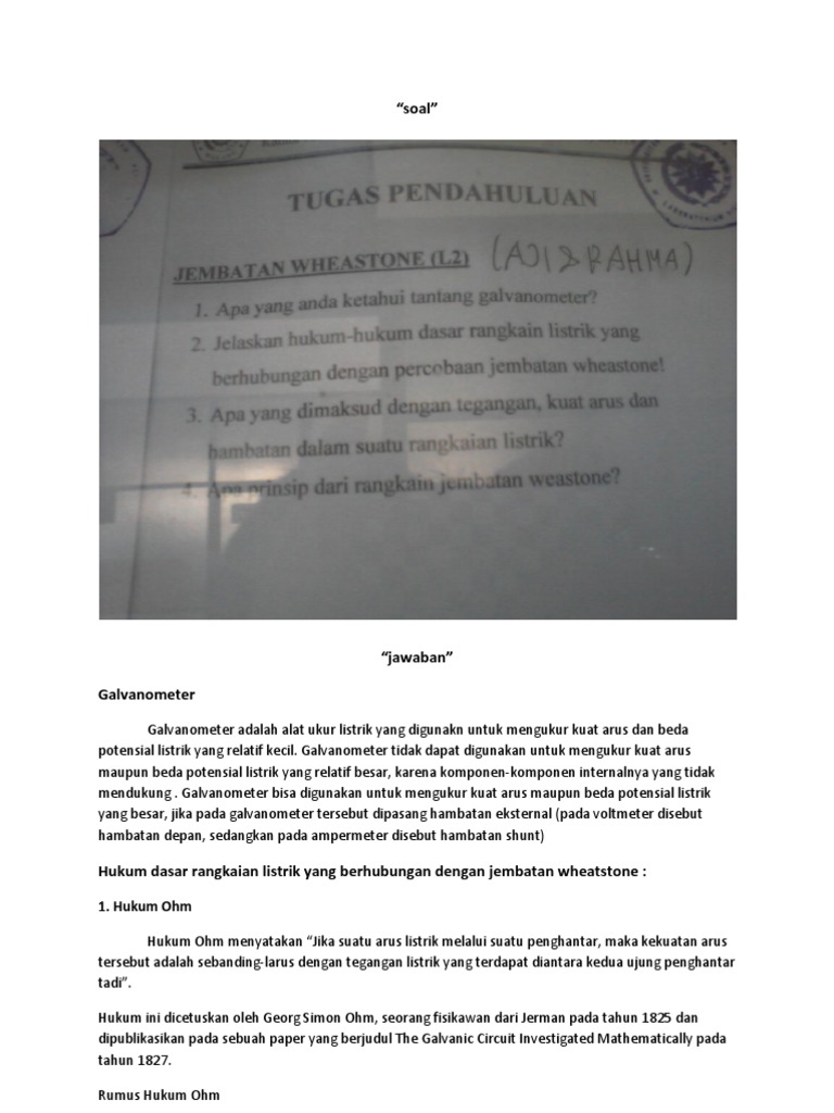 Contoh Soal Jembatan Wheatstone Hukum Kirchoff Dan Loop