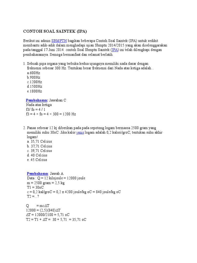 Contoh Soal Sbmptn Saintek Dan Pembahasannya 2014