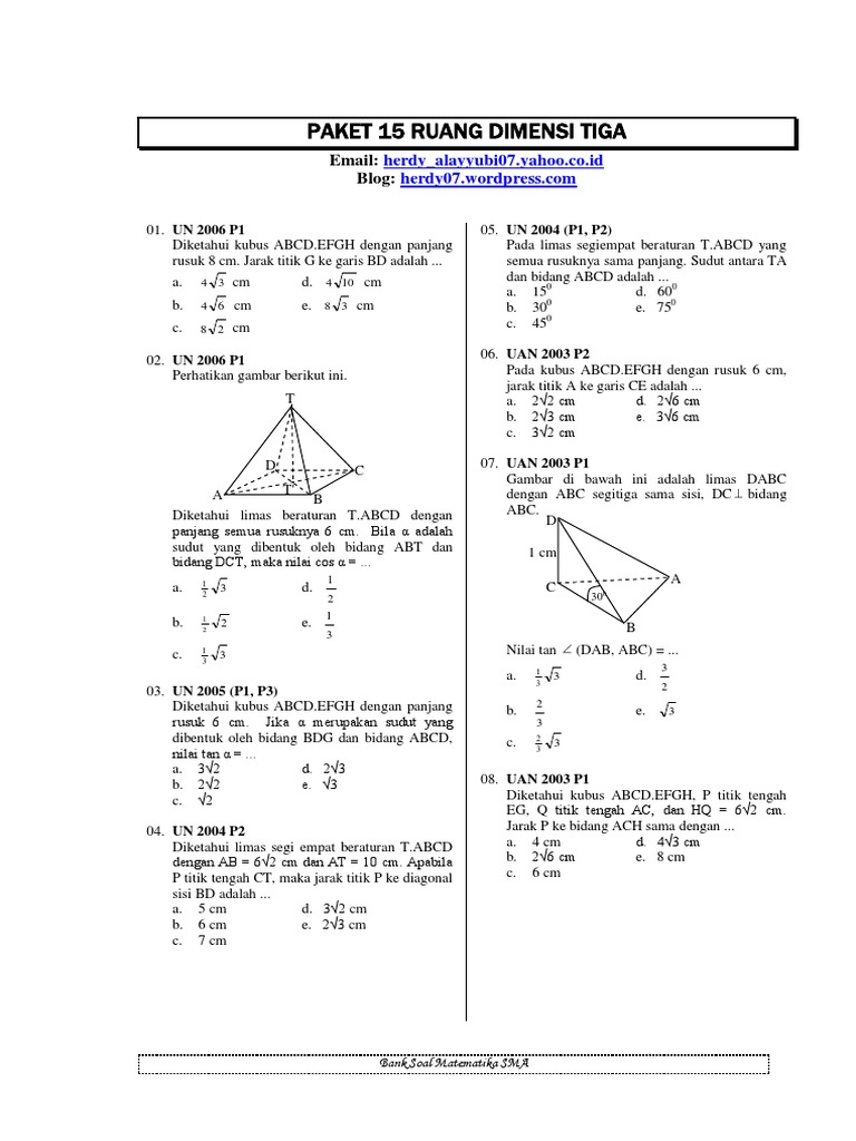 Pembahasan Soal Un Dimensi Tiga Smatika