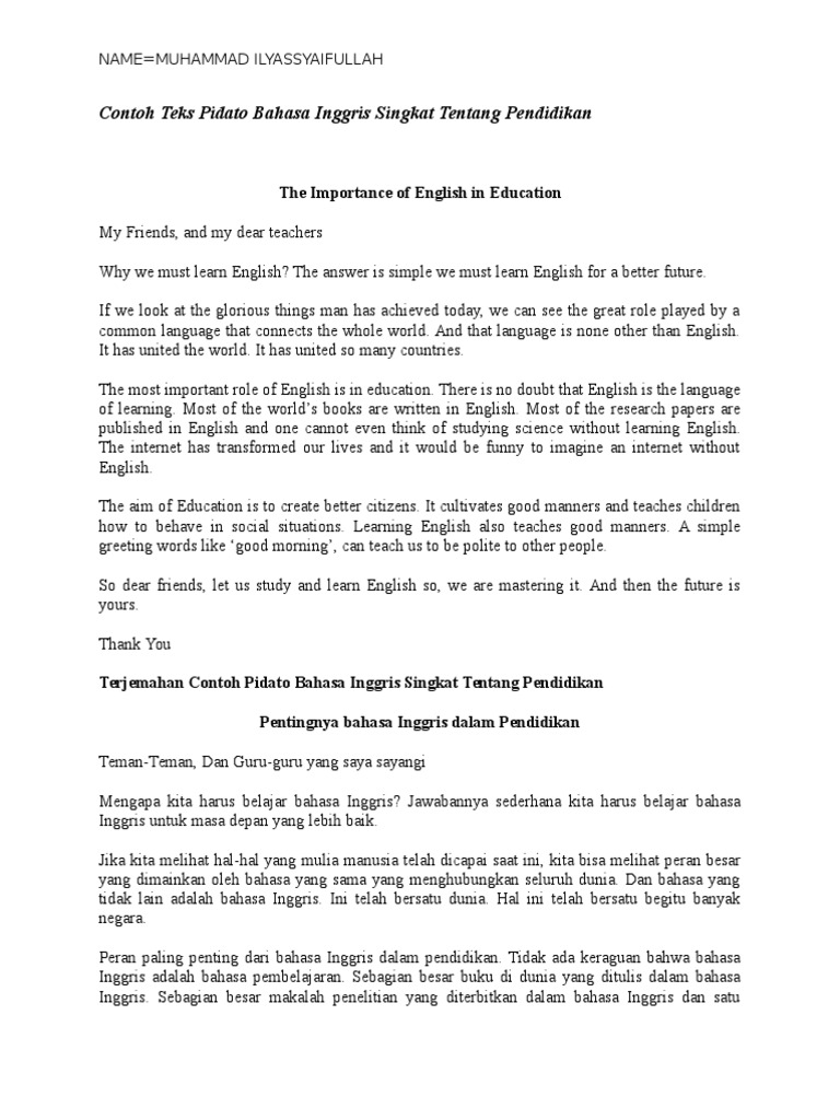 Doc Contoh Pidato Bahasa Inggris Tentang Pendidikan Di Hari