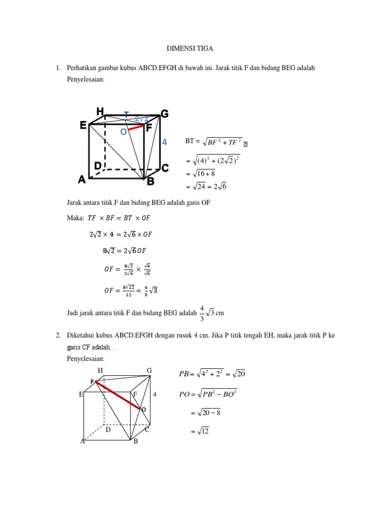 Download Jarak Titik Ke Garis Kubus Dimensi Tiga Sma