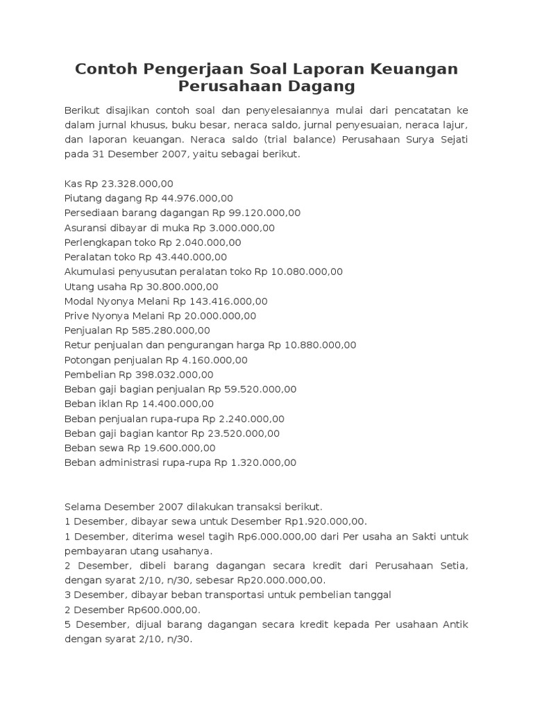 Contoh Soal Akuntansi Perusahaan Dagang Dan Penyelesaiannya