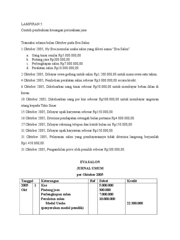 Contoh Jurnal Umum Akuntansi Perusahaan Jasa Docx Document