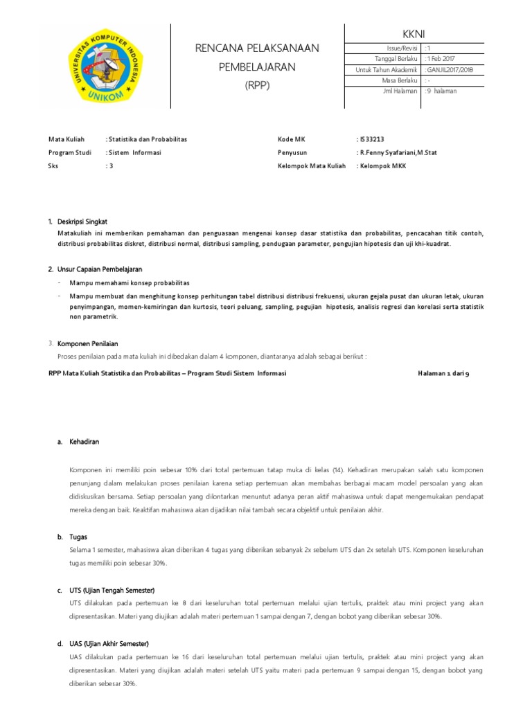 Satuan Acara Perkuliahan Statistika Universitas