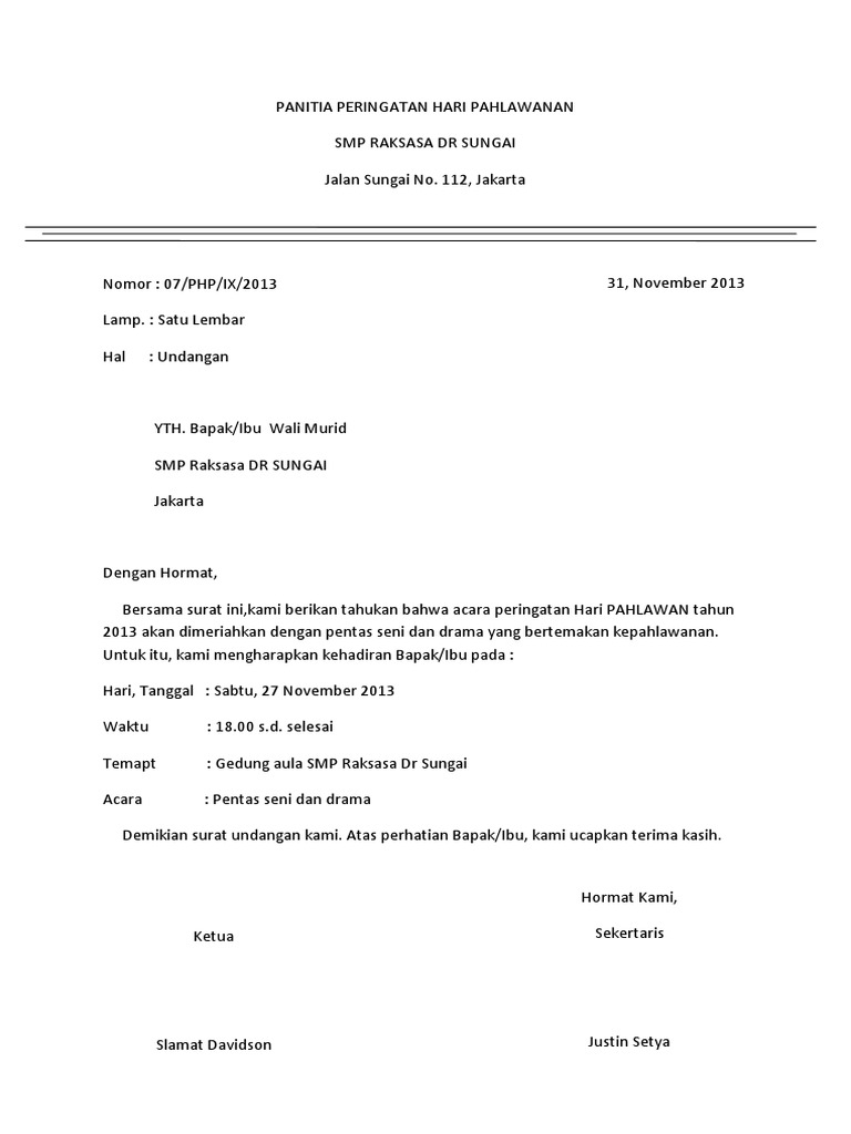 Kegiatan tersebut bisa berupa acara maupun rapat yang akan dilangsungkan dalam waktu dekat. Your best friend, joni the explorer. Jalan imam bonjol, no 12, muntilan. Ada beberapa contoh surat undangan yang tidak resmi seperti surat undangan syukuran kelahiran bayi atau aqiqahan, surat undangan hari ulang tahun dan surat undangan pernikahan. Contoh surat undangan rapat sekolah dengan orang tua. Pimpinan daerah ikatan mahasiswa nahdlatul ulama sekretariat : Salah satu contoh surat kuasa yang serin ditemui adalah surat kuasa pengambilan uang. Sekolah dasar tunas bangsa muntilan. Contoh surat udangan acara perusahaan. Surat resmi terdiri dari kop surat, nomor, lampiran, perihal, serta adanya tanda tangan dan stempel khusus dari lembaga yang bersangkutan. Contoh surat undangan acara pentas seni. Di kesempatan kali ini dosenpintar.com akan membagikan artikel mengenai tentang contoh surat undangan yang meliputi. Nah berikut ini kami akan memberikan contoh dari surat undangan yang bisa anda gunakan di berbagai kegiatan, baik undangan resmi contoh surat undangan acara pentas seni.